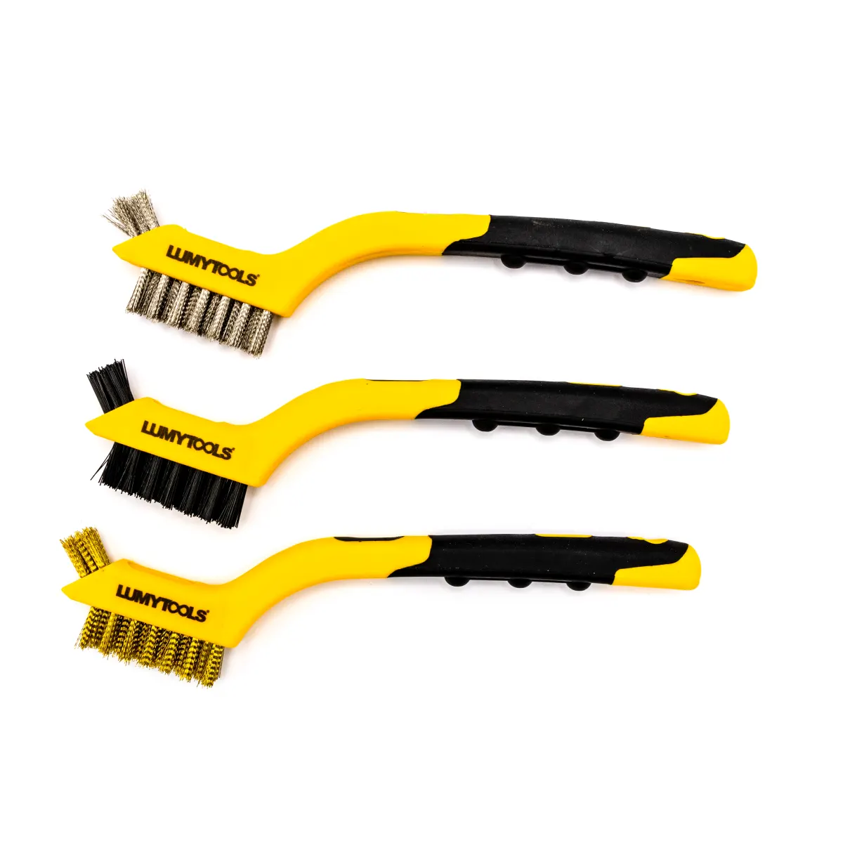 Set 3 miniperii, alamă, nylon, oțel LT06930 – ideal pentru lustruirea și curățarea metalelor și a diverselor suprafețe.
